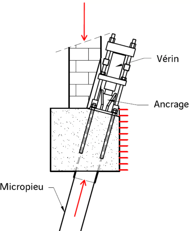 Mais cette opération reste complexe et coûteuse. Pour maîtriser les coûts, il est important d’optimiser et de sécuriser la technique. Freyssinet a donc développé une solution innovante de micropieux préchargés, qui rend la méthode à la fois plus fiable, plus rapide et moins intrusive pour les occupants. Lorsque l’habitation ne comporte pas de murs porteurs intérieurs (refends), l’intervention peut même être réalisée entièrement depuis l’extérieur.