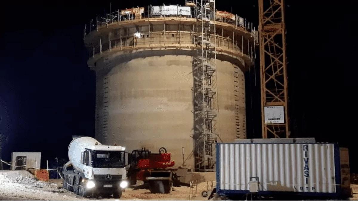 Pour notre client, la société Rivasi, il s’agissait du premier chantier de coffrage glissant et de précontrainte. La technique de construction du digesteur par coffrage glissant à élévation continue a nécessité la mobilisation d’un travail posté (en 3×8) sur une période de sept jours pour assurer la continuité des opérations de bétonnage. Les équipes Freyssinet ont travaillé en parallèle avec les équipes de monteurs d’armatures et de bétonneurs, nécessitant une coordination sans faille tout au long des opérations. Ce travail en parallèle a impliqué un rythme de pose très rapide et un autocontrôle rigoureux des opérations réalisées.