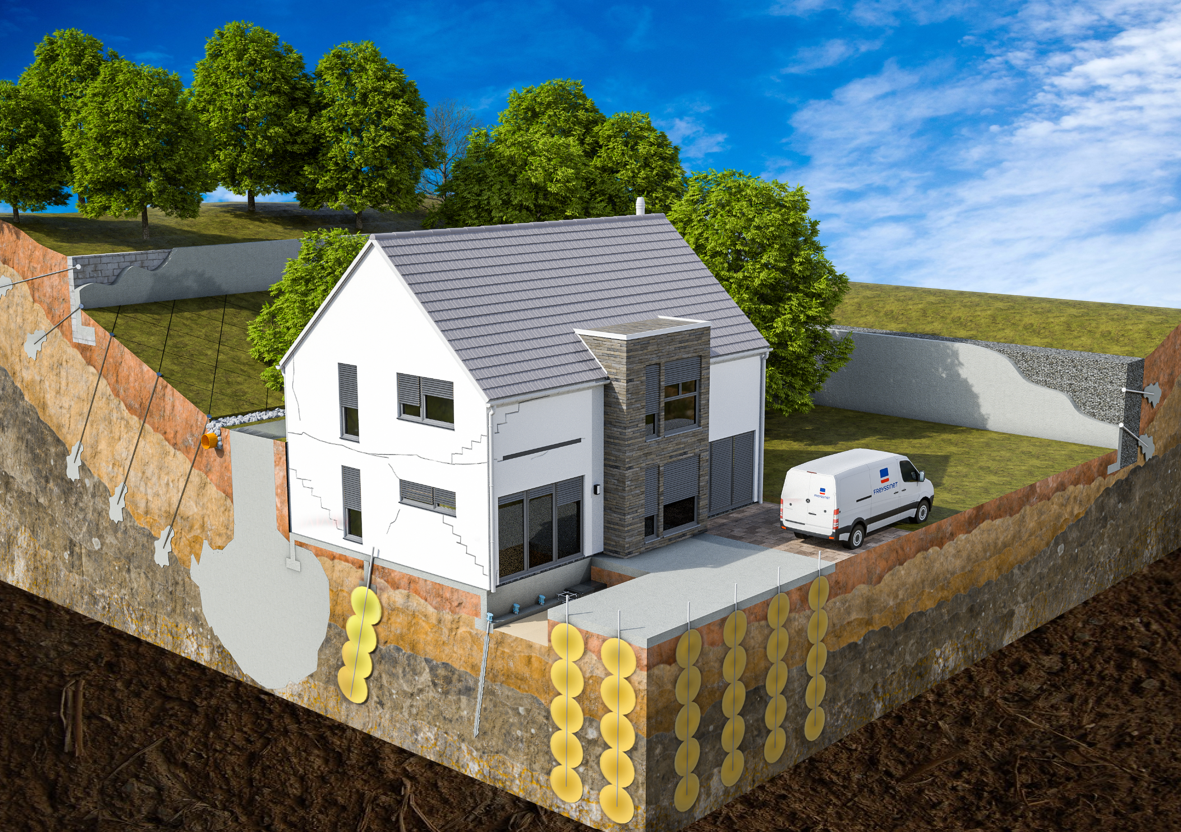 Nos interventions sont curatives : elle garantissent la pérennité d’un ouvrage qui a été déstabilisé par un mouvement du terrain ou par des canalisations fuyardes, pour réparer ou renforcer des fondations dont la dégradation ou l’insuffisance met en péril la structure.