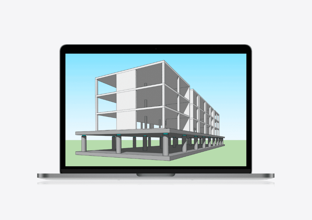 Lorsque la solution de mise à niveau de la structure fait appel à des dispositifs parasismiques de la gamme ISOSISM®, Freyssinet réalise un pré-dimensionnement des dispositifs à l’aide d’un modèle numérique avancé de la structure à renforcer, afin de faciliter le dimensionnement final par un bureau d’études.